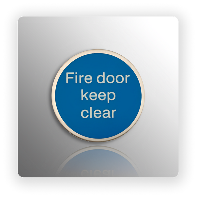 Automatic Fire Door Keep Clear Sign 75mm Diameter Satin Stainless Steel