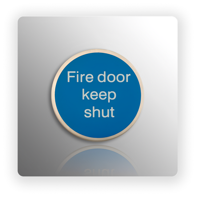 Maintain fire safety with this 75mm 'Fire Door Keep Shut' sign made from high-grade stainless steel. It has adhesive backing for easy installation. Matching fire safety signs available.
