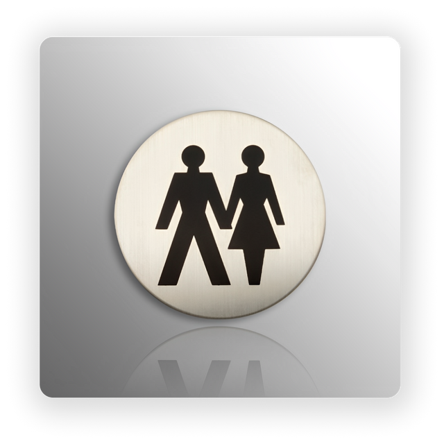 Our gender-neutral toilet door sign features male and female symbols on a high-quality stainless steel plate with adhesive backing. It's ideal for any restroom facility and pairs well with matching signs to create a cohesive look. Measuring 75mm in diameter, it's a simple way to mark your all-gender restroom.