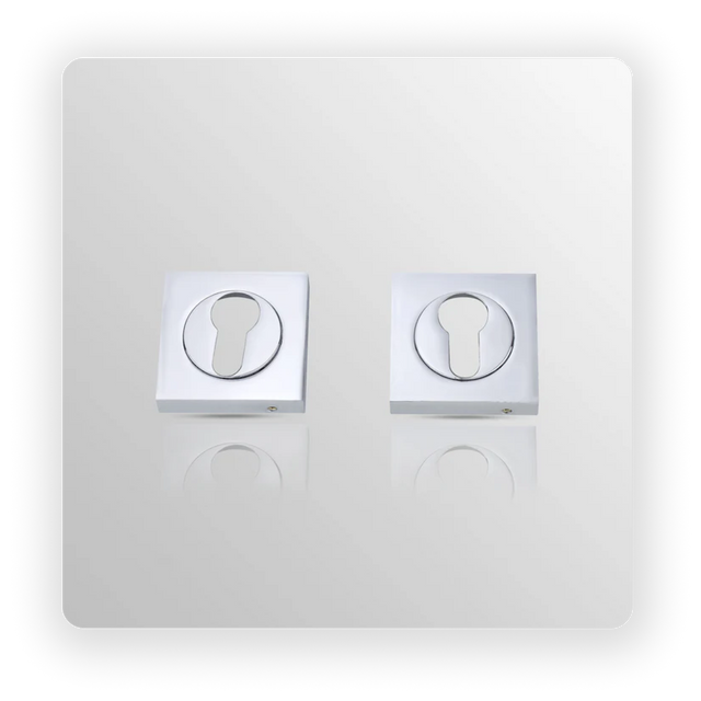 Euro Cylinder Escutcheon Pair with Square Rose in Dual Chrome