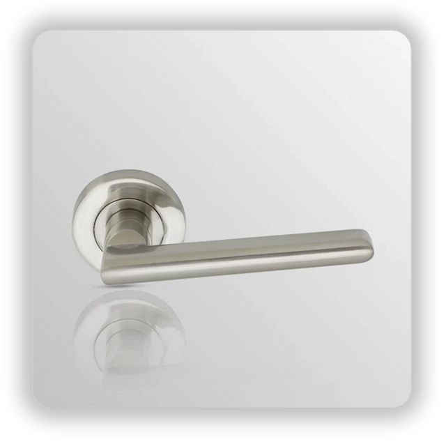 Door handle on round rose in Satin Nickel/ Polish Nickel finish