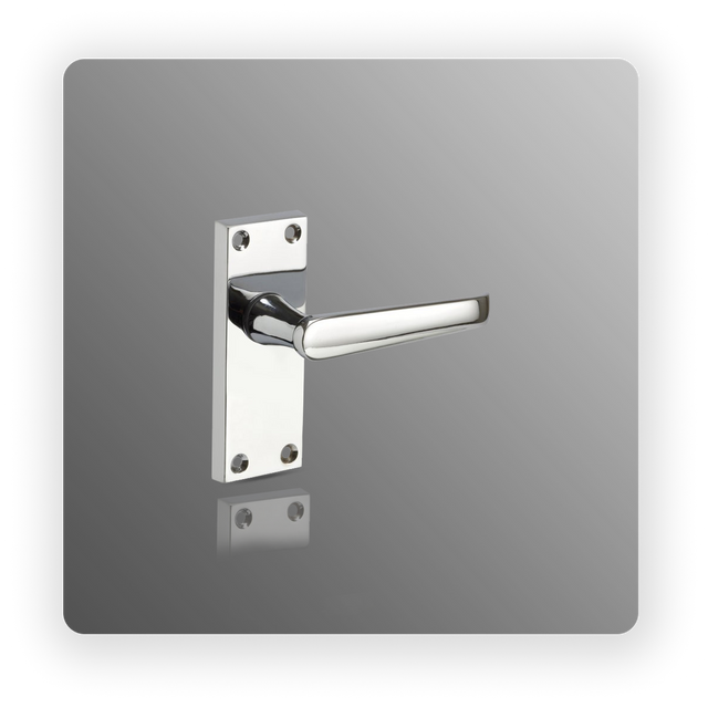 Polished Chrome Door Handles on Backplate with Victorian Straight Lever