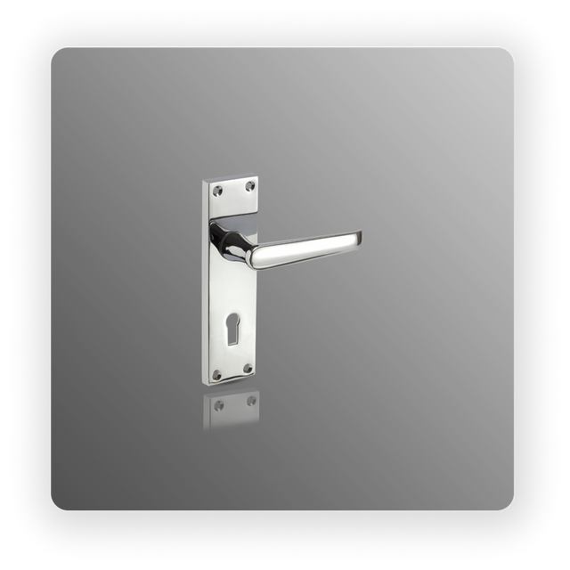 Traditional Door Handles with Straight Lever on Lock Backplate - Polished / Chrome is backordered and will ship as soon as it is back in stock.
