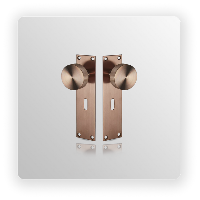 Knurled Copper Door Knob on Lock Backplate