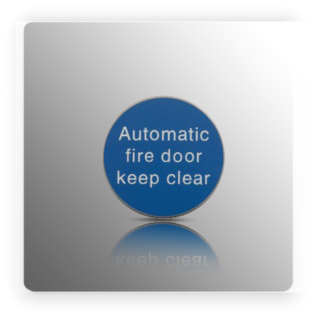 Automatic Fire Door Keep Clear Sign 75mm Diameter Satin Stainless Steel