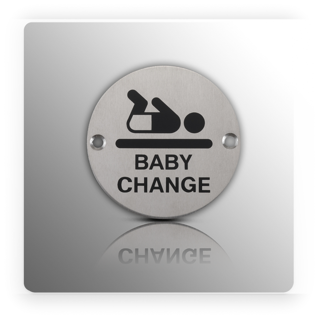 Baby Change Sign for Doors with Brushed Stainless Steel Finish