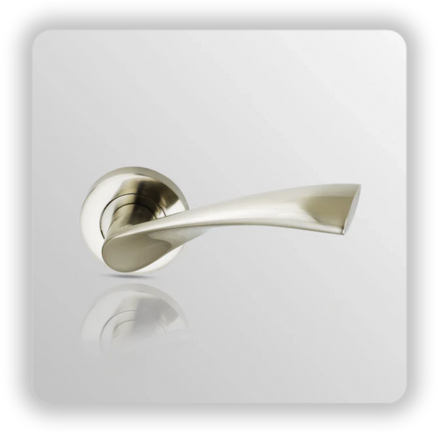 Door handle on round rose in Satin Nickel/ Polish Nickel finish
